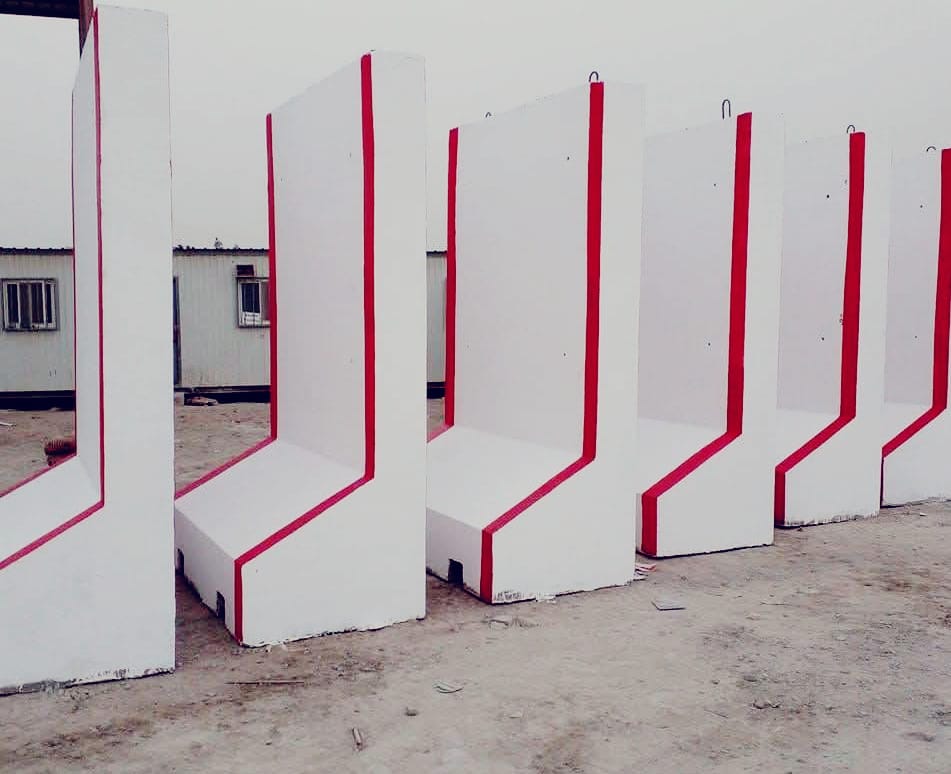 تستخدم تلك الحواجز كأسوار خرسانية أمنية وعادة ما تستخدم في المنشئات العسكرية وتتوفر لدينا بكافة الأنواع منها ذات وجه واحدة ومنها ذات وجه مزدوج